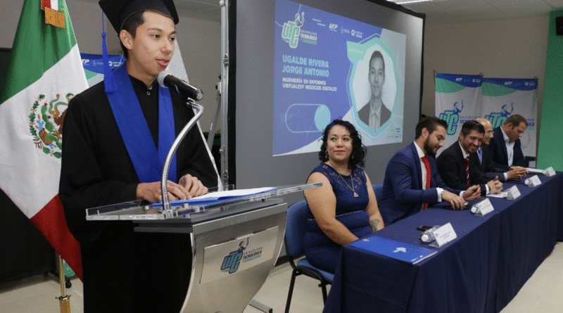 La Universidad Tecnológica de Corregidora (UTC) llevó a cabo la ceremonia de graduación de 60 egresadas y egresados de las carreras de Ingeniería en Entornos Virtuales y Negocios Digitales e Ingeniería en Biotecnología. En el evento, el rector Alberto Lugo Ledesma entregó las constancias de terminación de estudios, destacando la preparación de las y los nuevos profesionistas para integrarse al sector productivo de Querétaro.